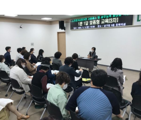 광주 남구가 노인장기요양기관의 현장 애로사항 해소를 위해 국민건강보험공단과 함께 광주지역 자치구로는 최초로 ‘1문 1답 교육’을 정기적으로 진행하면서 좋은 호응을 얻고 있다.