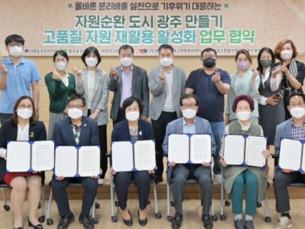 [남도저널 김용범 기자] 광주 서구가 지난 16일 올바른 분리배출 실천으로 ‘자원순환도시 광주’를 만들기 위해 고품질 자원재활용 활성화 업무 협약을 체결했다고 밝혔다.