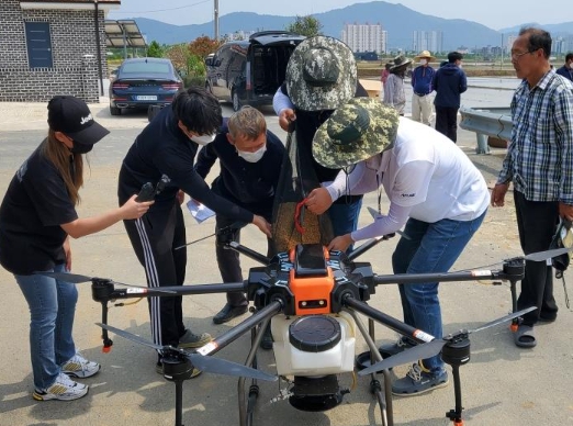 군은 탄소중립 시대를 맞아 디지털농업 보급 일환으로 농업용 드론을 활용한 벼 담수직파재배 기술을 확대 보급하고 있다.
