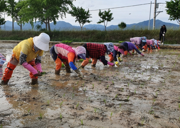 [남도저널 양용숙] 강진군농업기술센터는 지난달 26일 센터 내 벼 품종비교 전시포에서 손 모내기를 추진했다.