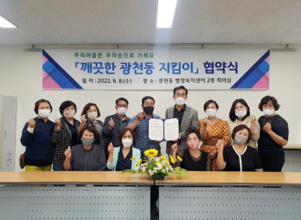 [남도저널 김용범 기자] 광주광역시 서구 광천동행정복지센터가 지난 8일 깨끗한 마을을 만들기 위해 관내 10여 개 단체들과 협약식을 가졌다.