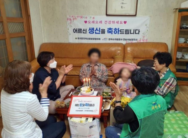 이번 취약 독거노인 생신상 차려드리기 사업은 한국수자원공사 전남서남권지사의 지원으로 진행됐다.