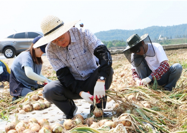 반 년 가까이 지속된 가뭄으로 인한 농작물 피해를 살피고 복구·보상 대책을 논의하는 한편 윤 당선인을 비롯한 인수위원과 사무직원 등 25명이 참여해 양파 수확에 일손을 보탰다.
