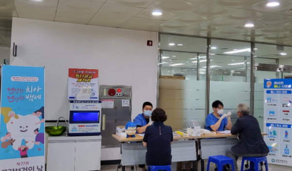 이날 행사는 보건소를 방문하는 관내 주민을 대상으로 구강검진 및 상담, 틀니 살균세척, 올바른 잇솔질 교육 등을 실시하고 구강관리 리플렛과 칫솔세트, 틀니 세정제 등을 배부했다.