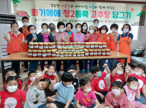 [남도저널 김용범 기자] 광주 서구 화정2동 지역사회보장협의체(위원장 고희자)가 지난 14일 취약계층을 위한‘고추장 담그기 나눔행사’를 개최했다고 밝혔다.