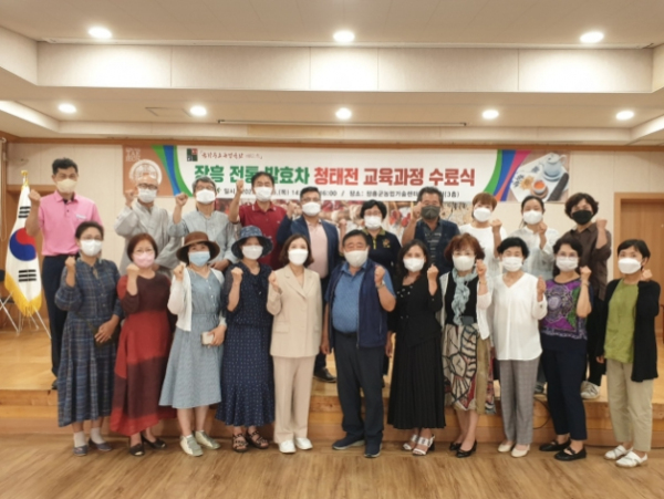 군은 전통 차 이론 교육, 청태전 이론 및 제다 실습, 관내 다원 현장견학 등 교육을 진행해 19명의 수료생을 배출했다.