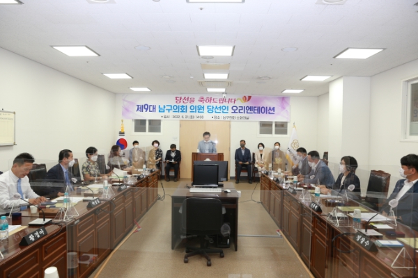 [남도저널 김용범 기자] 광주 남구의회는 21일, 제8회 전국동시지방선거에서 남구의회 의원으로 당선된 11명의 당선인을 대상으로 남구의회 소회의실에서 오리엔테이션을 실시했다.