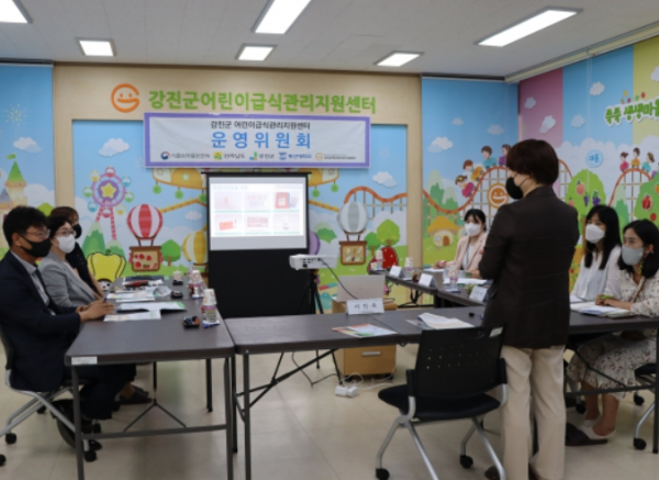 운영위원회는 강진군 관광과 위생팀, 주민복지실 여성친화팀아동청소년팀, 어린이집지역아동센터 연합회장, 어린이급식소 부모 등 운영위원 8명으로 구성돼 있다.