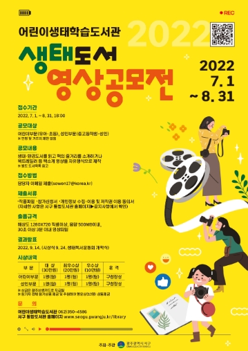 [남도저널 김용범 기자] 광주 서구 어린이생태학습도서관에서 2022 어린이생태학습도서관'생태도서 영상 공모전'을 개최한다고 밝혔다.