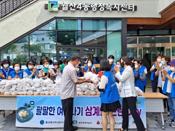월산4동 행정복지센터는 경로당 8곳과 지역아동센터 5곳, 공동생활가정 1곳, 장애인종합복지관 및 노인복지시설 1곳, 저소득 가정 등에 삼계닭을 전달했다.