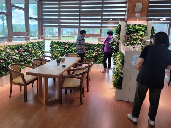 군은 목재산업지원센터, 정남진도서관, 바이오산단 내 기업 등 3곳에 식물 유지관리 자동화기술을 도입한 ‘스마트가든’을 설치해 운영하고 있다.